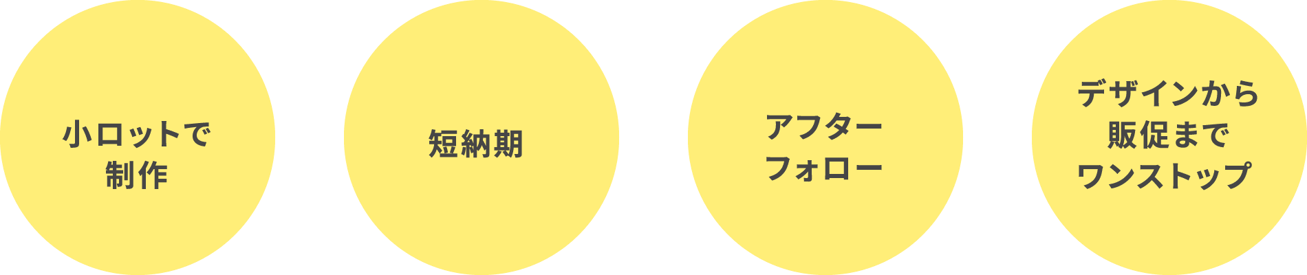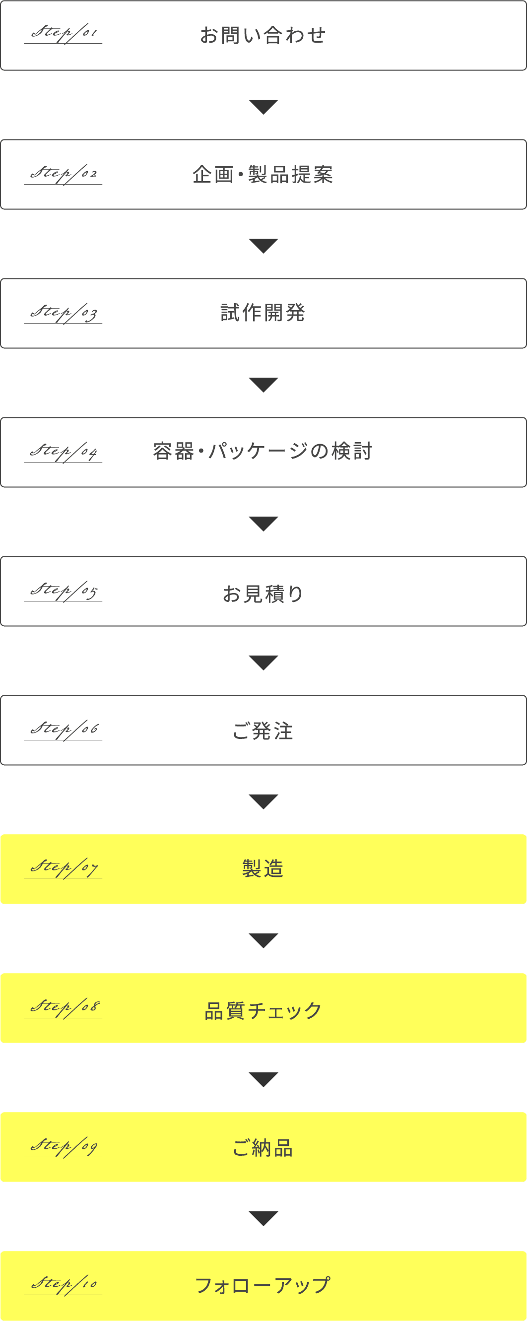 高品質な製品開発、柔軟なロット対応、そしてパッケージデザインに至るまでトータルでサポートいたします。
